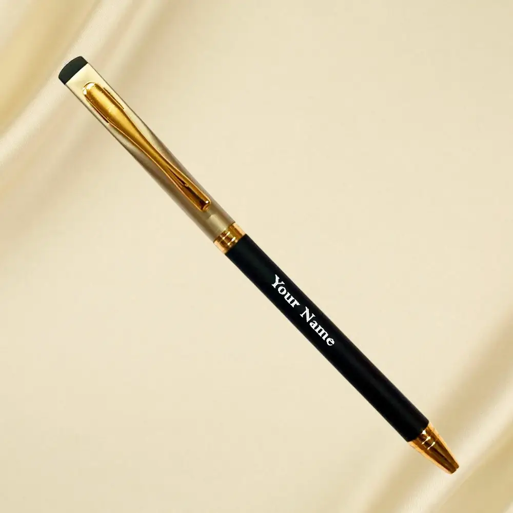 Crafted from high-quality metal, the pen offers an excellent grip and balance, ensuring a smooth and effortless writing experience. Its minimalist yet striking look is enhanced with personalized name engraving, giving it a unique identity that makes it more than just a writing instrument – it becomes a memorable keepsake. The twist-open mechanism and durable clip provide functionality and style, suitable for daily use or special occasions.